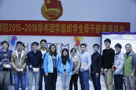 缘聚圣诞,炫彩青春。2015年12月24日晚,校团委学生会在大学生活动中心一楼活动室成功举办迎春座谈会。校团委书记李娜、副书记余亮、秘书饶婷婷以及各团学组织学生骨干共计200余人参加本次座谈会。
