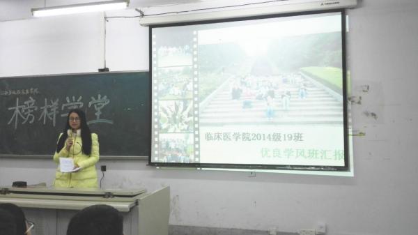 诚信考试严相待,学习经验耳相传。为助临床医学院2015级学子严肃考风,安心备考,轻松迎战。在考试月来临之际,临床医学院于12月10日晚七点在1404、1501、1502等五个教室分别开设“榜样学堂”,主讲人为校“十佳学风班”代表,我院高年级在专业学习、文化素质等方面有突出表现的优秀学子及2015级辅导员。