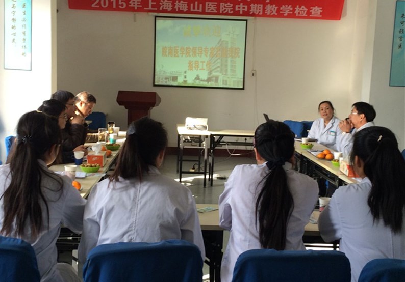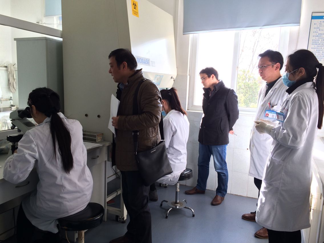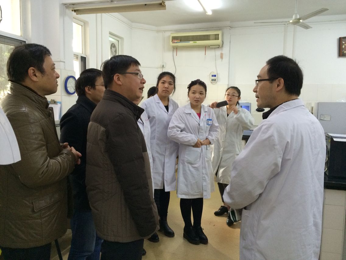 2012级医学检验专业学生实习已进入中期,为更好地加强实习基地管理,及时掌握学生实习动态,提高实习质量,2015年12月3日日,医学影像与检验学院副院长许国飞、临床检验教研室主任浦春、辅导员陶香林一行赴上海梅山医院检查2012级医学检验专业学生实习情况。上海梅山医院副院长马兆龙,检验科主任潘振华,医务处主任鲍缨接待了检查组。本次检查工作主要分三个部分:首先是医院医务处、检验科围绕医院概况、设备情况、教学设施、师资队伍、教学实习工作等方面向检查组作了详细介绍。接下来,检查组一行对实习同学的理论学习和实践技能进行了全面系统的考核,内容涵盖显微镜下网织红细胞计数操作、辨认红细胞形态、辨认尿沉渣心态、革兰氏染色、血型鉴定等方面内容。最后,检查组在医院组织下分别召开了实习带教老师和实习生座谈会,就实习生状况、教学条件、教学管理等方面进行座谈,并走访了实习生宿舍。