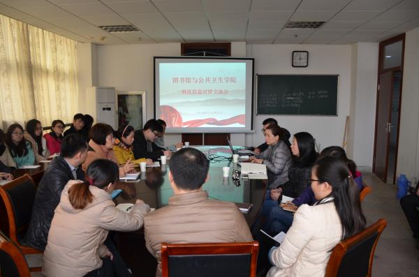 2015年12月8日中午在公共卫生学院会议室,图书馆与公共卫生学院联合召开“图书馆与公共卫生学院科技信息对接交流会”,会议由公共卫生学院副院长黄月娥主持,图书馆副馆长李用菊等一行四人、公共卫生学院各教研室教师代表及学生代表参会。