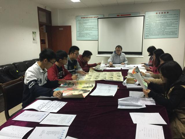 药学院2015级团总支学生会于11月24日晚举行了评比,经过两个小时认真的评审,书法和绘画各评出一等奖、二等奖、三等奖若干;同学们的作品经过布置放置新食堂门口展出,让同学们一同欣赏这一幅幅作品。
