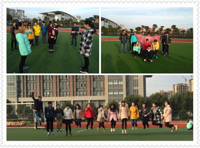 为了增强团队协作,加强同学们的相互信任和理解,药学院2015级辅导员组织学生开展素质拓展活动。活动内容主要包括“团队孵化”,学生自行分组,各组在20分钟内拟定队名、口号、对歌,通过比拼,其中一组的精彩表现赢得了大家的一致好评:我们的队名是“一班,火!”我们的口号是“一班不一般”,我们的队歌是“你的热情好像一把火,燃烧了整个沙漠”,这一小组的热情点燃了整个活动现场; “集体离地拍照”所有学生站在一起,一起向上跳起拍照留念,每个小组都团结协作,积极配合,成功完成任务。整个活动过程中冬季的寒冷抵挡不住同学们的热情,同学们都积极参与,此次素质拓展活动让同学们感受到了团队精神、班级荣誉感以及集体的温暖。