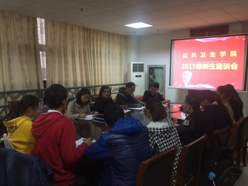 为帮助同学们更好的适应大学生活,了解和帮助新生解决开学至今所遇到的困难和问题,11月19日,公共卫生学院在学院会议室举办了新生座谈会,党总支书记朱丹主持。辅导员李力、叶晨和2015级学生代表参加了此次座谈会。