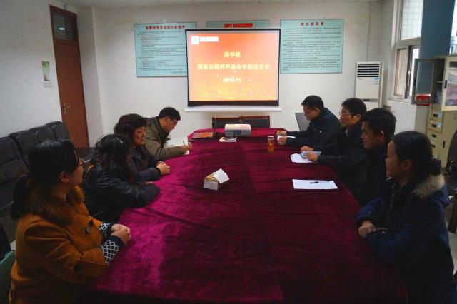 为了做好2016年国家自然科学基金申报工作,增强学院科研申报氛围,药学院于11月25日中午在西辅楼5032室召开了国家自然科学基金申报动员会,药学院院长刘晓平主持会议,各教研室教授、副教授、博士学位老师参加了会议。