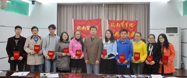会上,校报记者团团长王莉莉对2014-2015年度校报记者团工作进行了总结。一年来,校报记者团在自身队伍建设、学风建设、校报采编、校内服务、外事交流等方面取得了长足进步。在自身队伍建设方面,通过举办新闻写作培训、摄影讲座、定期采访、开展征文与摄影比赛等形式不断提升学生记者的专业素养和业务能力。记者团不定期举办大型采风活动,丰富团内文化生活。在学风建设方面,记者团倡导以老带新,以强带弱,学风建设成效显著,在学校年度综合测评中,2013、2014级37名学生记者中有15人获得各类奖学金,其中国家奖学金、国家励志奖学金各一名同学,四名同学获得一等奖学金,一名同学获学校“十佳大学生”提名奖。学生记者积极参与校内外大型比赛,并屡获佳绩;在全国大学生计算机比赛中,三名同学获得全国二等奖的优异成绩。学生记者还积极参与校内外科研活动,全面提升综合素质。工作方面,学生记者在编辑部老师的指导下有条不紊地撰写新闻稿和编辑副刊,校报记者以“坚持正面宣传,主动出击”为基本原则,积极参与校内的各种大型活动,展示学校形象,传播当代大学生积极向上的青春正能量。在外事交流与宣传方面,学生记者应邀赴合肥参加了安徽省第十二届大学生记者峰会、受邀赴北京参加中青网授牌仪式、举办了第四届芜湖市高校记者交流会。仅一年,学生记者就向《安徽青年报》、《大江晚报》等校外报纸刊物供稿三十余份。