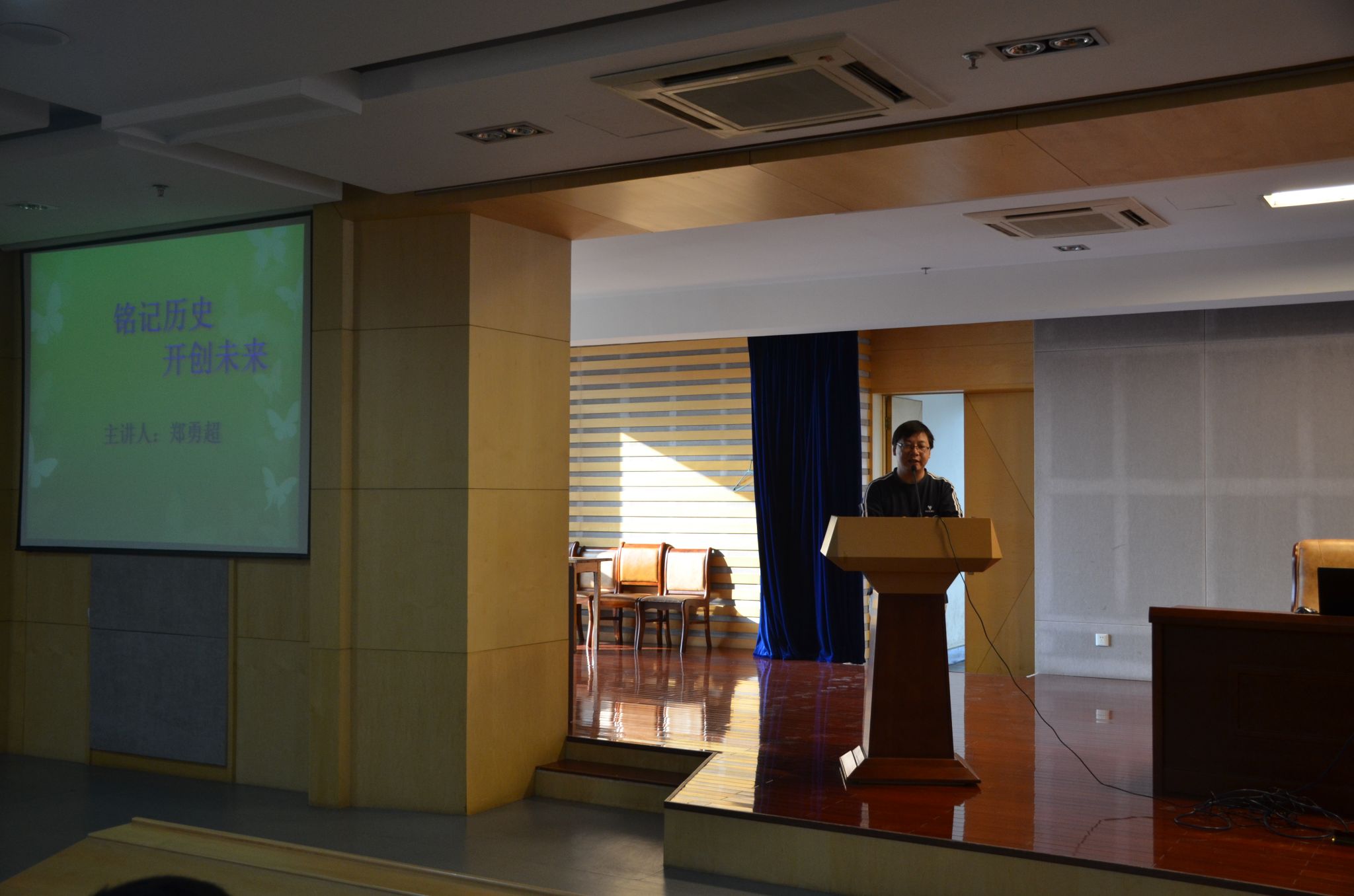 铭记历史,缅怀先烈,珍爱和平,开创未来。为大力弘扬民族精神,更好地激发学生们的爱国热情,在抗战胜利70周年之际,医学影像与检验学院于2015年10月23日在图书馆三楼报告厅举办了“铭记历史,开创未来”主题的讲座。此次讲座校关工委郑勇超老师主讲,学院副院长许国飞主持,院关工委秘书陶香林,2015级辅导员周超、王康淇及2015级新生共同聆听了此次讲座。