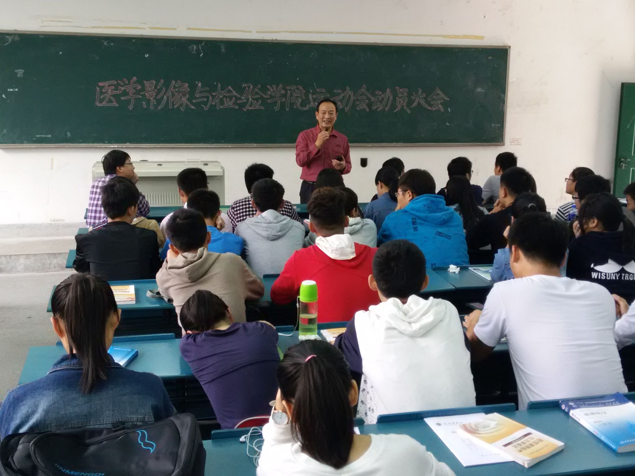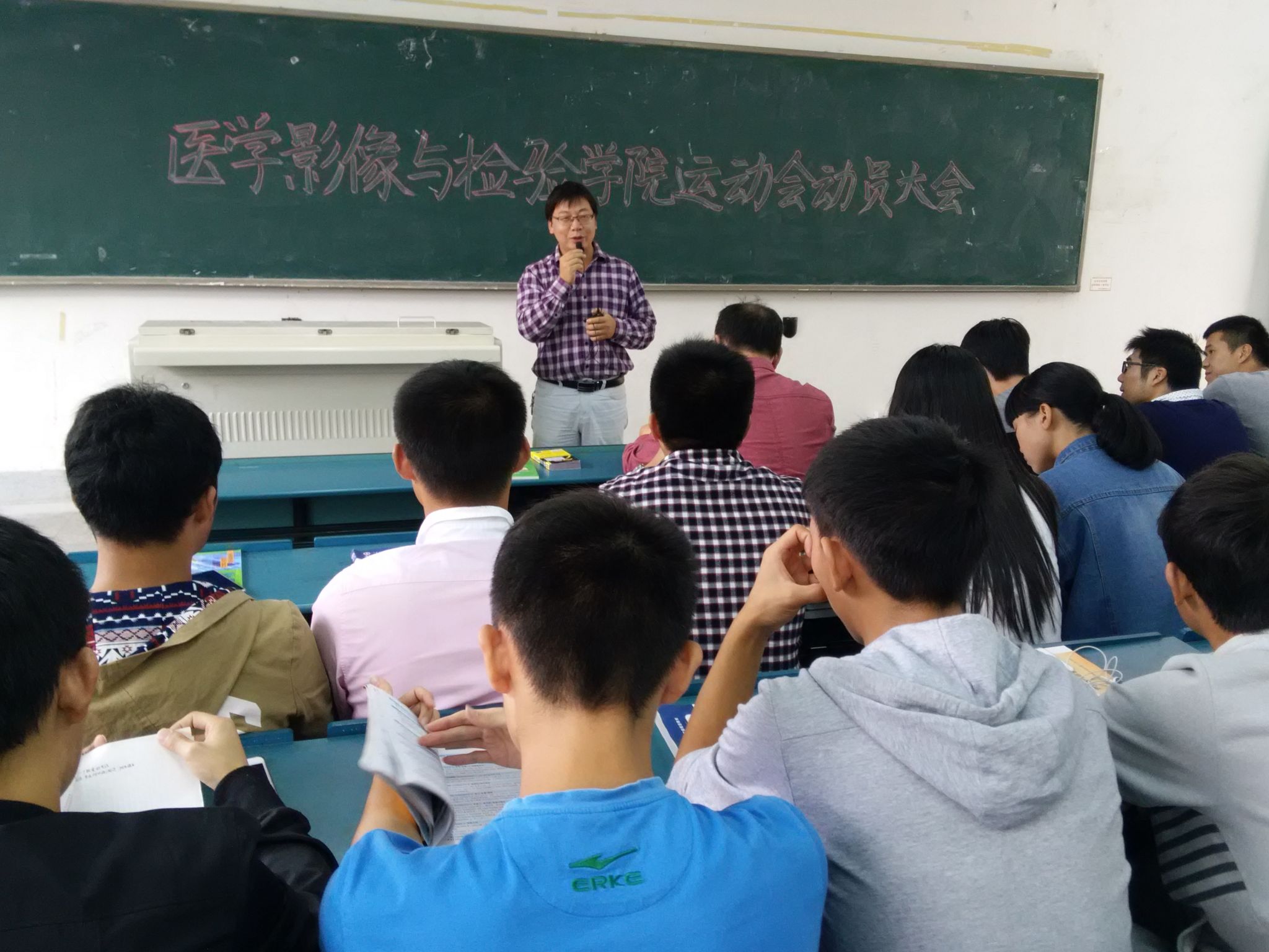 为更好的备战校第36届运动会,鼓舞运动员赛前志气,医学影像与检验学院于2015年10月22日在东教104举行运动会动员大会。此次动员大会由2011级辅导员孙开慧主持,副院长许国飞,2014级辅导员骆成,2015级辅导员王康淇、周超出席此次会议。