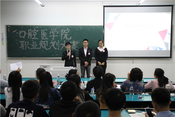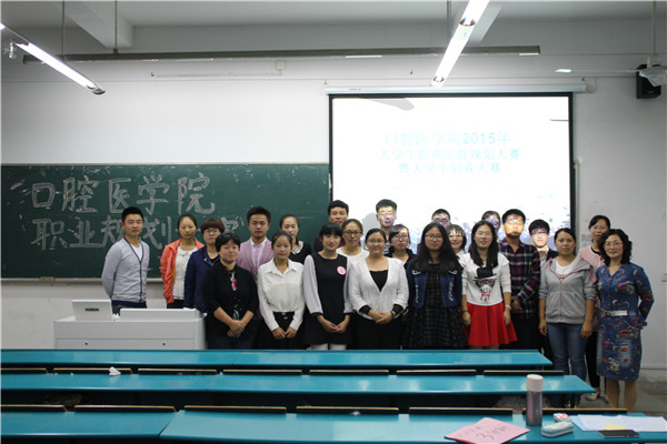 为强化大学生职业规划意识和创业意识,提高大学生的综合能力和素质,引导大学生面向基层就业,规划精彩人生;施展创业才华,放飞激情梦想。口腔医学院于2015年10月15日晚7:00在2203教室举办了2015年大学生职业规划设计大赛暨创业大赛。学生处就业管理科科长景婷,口腔医学院党总支书记柴琳、教学秘书王娓、学生工作秘书吕晓飞、辅导员张晋艳、杨丹担任评委,来自2013、2014级口腔医学的就业组4位选手、创业组4组选手参加了本次比赛。