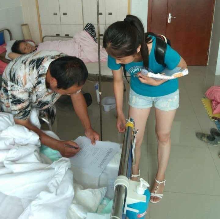 为进一步了解造成医患沟通障碍的影响因素,7月25日至8月5日,“精医求实”社会实践队实地走访了芜湖市弋矶山医院、南京市军区总医院、六安市第一人民医院等12家医院,将精心设计的调查问卷送到的医护人员和就医的患者手中,共发放医护人员问卷1100份,患者问卷550份。在实地调研过程中,热心的实践队员们还向部分患者普及了基本的医学常识。