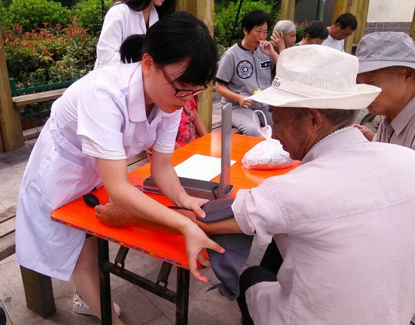 7月16日,服务队又来到临泉县姜子牙文化广场,组织开展爱心义诊活动,一组帮助广大群众测量血压,另一组宣传卫生安全小常识,发放高血压保健宣传单100余份,免费测量血压200余人。爱心义诊活动深受当地老年朋友的喜爱,现场反应热烈,同学们热情周到的服务和无微不至的关怀得到了大家的一致好评。