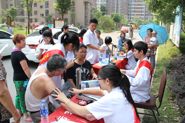 7月15日,美丽中国实践团芜湖队首先来到芜湖市儒林社区,带着血压计等健康测量工具,开展了为期7日的社会实践活动 。队员们为居民们测量了血压,并向居民们分发了疾病、自然灾害预防等宣传手册,为居民普及了资源环境节约保护的小知识。保护环境,是实现“美丽中国”的第一步,队员们通过实际行动,号召并指导群众关爱身体健康、保护环境资源,为构建美丽中国、和谐社会贡献力量。