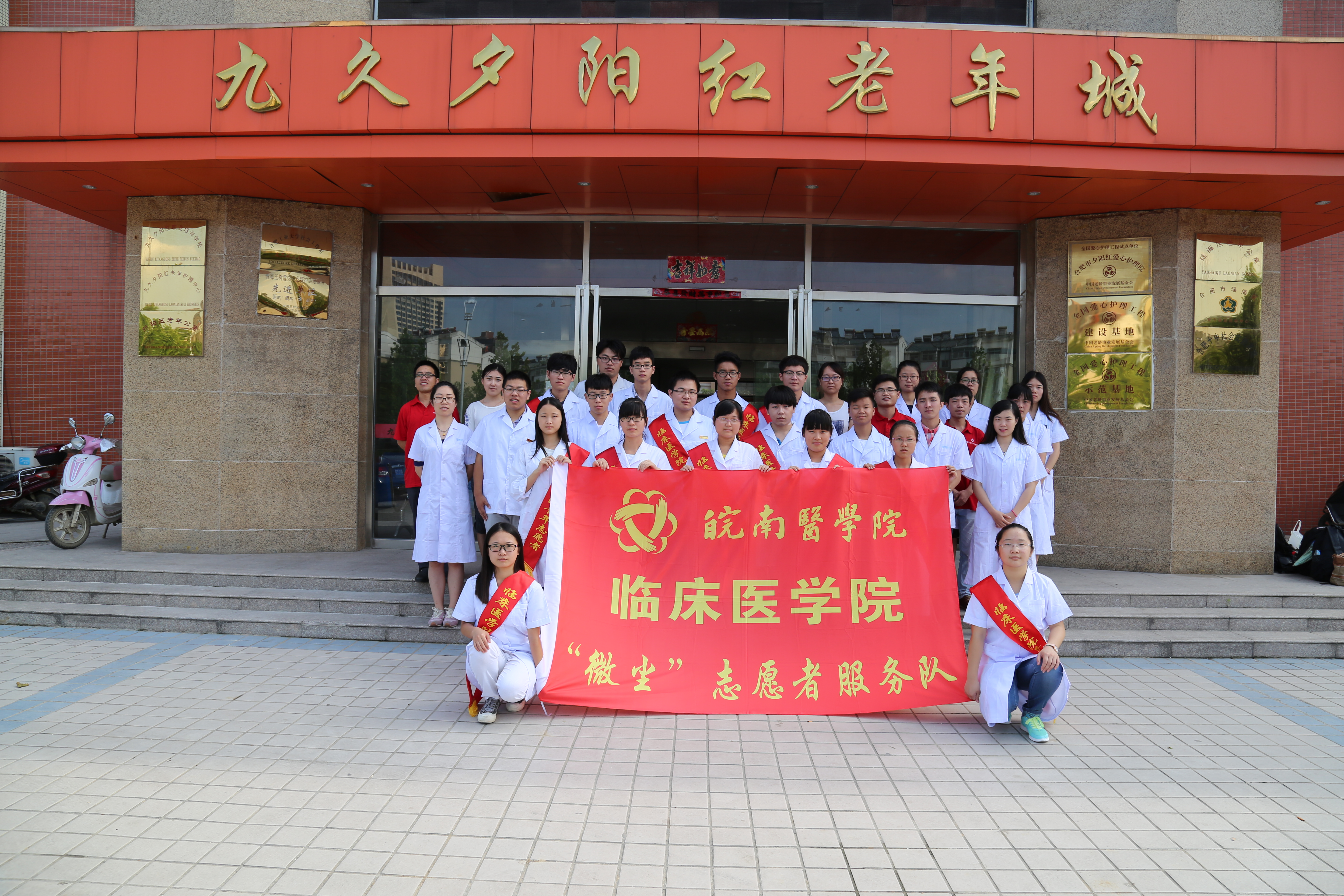 为深入学习贯彻党的十八大和十八届三中、四中全会以及习近平总书记系列重要讲话精神,引领广大青年学生按照习近平总书记关于“勤学、修德、明辨、笃实”的“八字真经”要求,树立和践行社会主义核心价值观,临床医学院 “微尘”志愿者服务队中青马班学员组成的“星火爱心”小组于7月12日至13日在合肥市九久夕阳红老年城发起“青马爱心,关爱老人”公益活动。