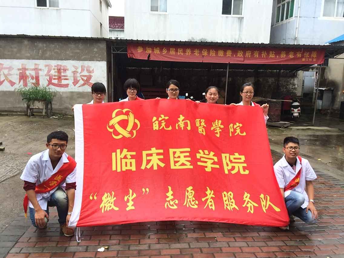 7月7日,临床医学院“微尘”志愿者服务队赴沈巷镇迎江村开展爱心医疗服务:志愿者们依次给村民进行了简单的身体检查,并根据村民的身体状况,叮嘱他们适度锻炼;向村民们宣讲了夏季防暑的相关知识,并耐心的回答了村民们的问题。7月8日,志愿者们来到了芜湖市第二人民医院,开始了他们的医疗导诊活动:搀扶老年人上下电梯、面带微笑为患者引路、耐心劝导情绪激动的病人和家属、主动帮助患者在自助机上挂号……就这样,他们用自己的热情和爱心赢得了患者及家属的尊敬和发自内心的“谢谢”。 7月9日,志愿者们的身影又出现在鸠江区清水街道,逐户为社区居民测量血压,把“爱”送到家。