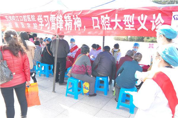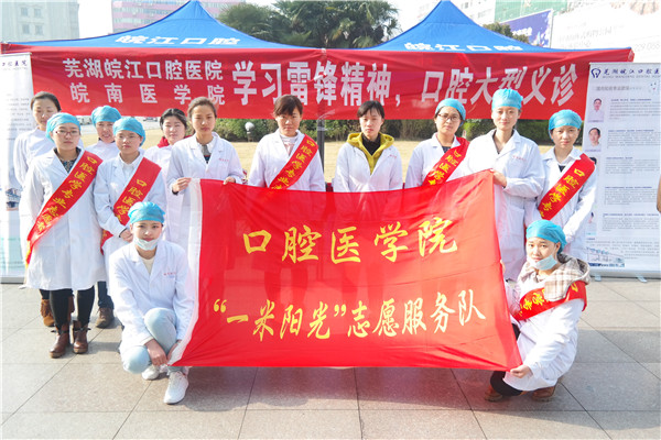 为提高社区居民的健康知识水平,增强居民的健康保护意识,弘扬雷锋精神,营造和谐社会的良好氛围。口腔医学院“一米阳光”志愿服务队再次出发,于3月21日、3月22日分别来到芜湖市华亿广场、芜湖市华强城社区开展“学雷锋 送健康”爱心义诊活动,免费为社区居民进行健康体检和口腔健康检查。
