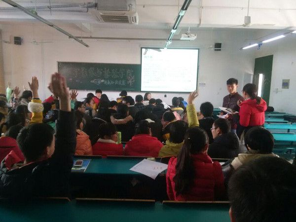 抢答现场 学院以知识竞赛次的活动形式普及心理健康教育的相关知识,不仅为学生们提供了一个融趣味性、知识性为一体的学习平台,同时也有助于拓展大学生心理健康教育的空间,增强心理健康教育的效果,从而引导学生以健康、积极、乐观的心态面对大学学习和生活。