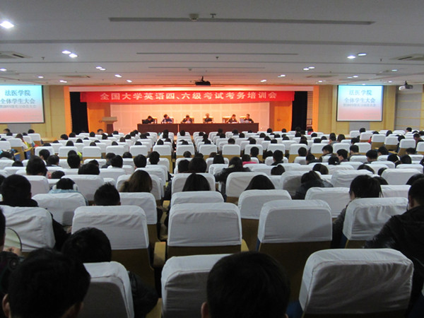 12月19日,法医学院在图书馆三楼学术报告厅召开全院学生大会暨实习生动员大会。法医学院党党总支书记洪亮、院长陈阳、秘书及全体在校学生参加会议。会议由王进步老师主持。 洪亮首先总结了2014年度法医学院的学生工作,梳理了法医学院学生工作取得成绩,分析了存在的不足,尤其是学风、考风和大学生综合素质中存在的一些问题,要求全体师生共同努力,去营造良好的学风考风,提高法医学院学生的综合素质。随后,陈阳就2011级实习学生进行实习前动员,要求2011级实习同学牢记自身职责,不仅需要学习知识,还要学会融入社会,遵守实习纪律,维护大学生的良好形象。最后,张萍老师就实习的一些具体工作进行了安排和布置。