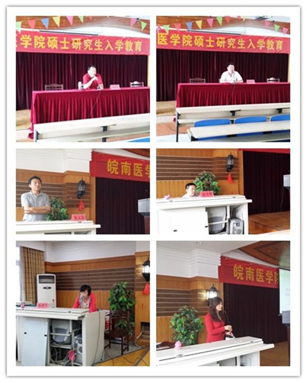 首先,研究生学院院长郑兰荣对新生的到来表示热烈的欢迎,并向新生详细讲解了学校及研究生教育概况,介绍了研究生学院各办公室工作职责。随后,她围绕“为什么、干什么、得什么、成什么” 四个问题,对研究生三年学习生活做了发展规划,并深情寄语新生:研究生要树立正确的学术理想、培育高尚的职业道德、培养良好的治学精神和和坚持终身学习的信念,做崇尚医德、医风和医术的医学研究生。最后,全体新生观看了视频《父母教会我》。 精彩活动集――实地参观,熟悉校园 9月16日上午,全体新生来到新校区,分批次参观了校史馆和人体标本陈列室。校史馆里,在顾明老师的讲解下,新生全面深入地了解了学校发展的历程,感受了皖医人建校以来所经历的艰辛、辉煌;人体标本陈列室中,新生认真观察了各标本的形态结构,感叹我校人体标本数量多,内容广,完整度高,制作细,进一步培养了研究生的爱校情怀和激发了医学生的学习兴趣。