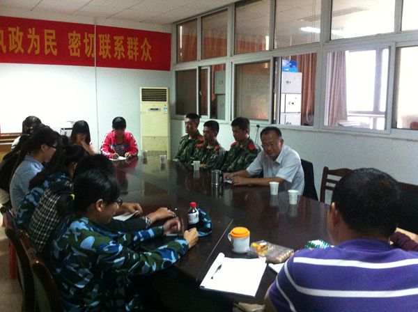 | 9月23日下午,护理学院召开2014级新生和军训教官座谈会。三位教官代表、学院党总支副书记李康才、新生辅导员秦莉、魏蔚和新生代表参加座谈会。座谈会由李康才主持。 会上,李康才代表护理学院向军训教官的到来表示诚挚的欢迎。他希望军训教官以自身优良的作风、严谨的纪律和高昂的斗志教育参训学生,从严管理、从严要求,引导学生树立爱国意识、团队意识。随后学生代表一一发言,他们觉得军训虽苦,但却是一个成长的阶梯,也是一生中最难忘的阶段,更是一个崭新的课堂,通过军训,同学们进一步强化了国防意识,同时在一定程度上增强了体质,磨练了意志,锻炼了抗挫品质,培养了团结协作精神,形成了良好的纪律观念。军训教官先后从各自连队的表现、自身的收获等方面进行了交流。教官们说“自己是新生入学的第一任老师,责任重大,对他们的影响意义深远。”带队刘教官代表全体教官对护理学院老师同学对教官无微不至的关怀表示感谢,并表示一定严格要求学生,科学施训,完成军训任务,达到军训目的。 最后,李康才指出,为了更好地发挥军训作用,使学生在锻炼身体素质、磨练意志品质中养成团队意识和艰苦奋斗的作风,学院将会与承训部队团结协作,加强沟通和协调,做好服务和保障工作,共同努力,圆满完成2014级新生军训工作。