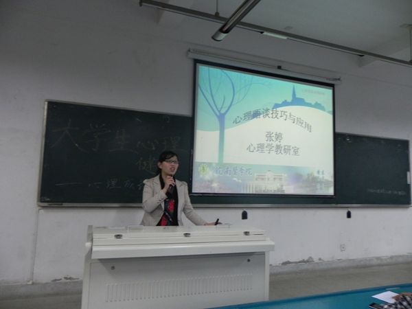 5月6号晚7点,“大学生心理健康月”系列活动之心理成长课第三讲在2#教学楼103教室开讲。本次讲座邀请了我校心理教研室的张婷老师作“心理辅导的会谈技术”的报告。