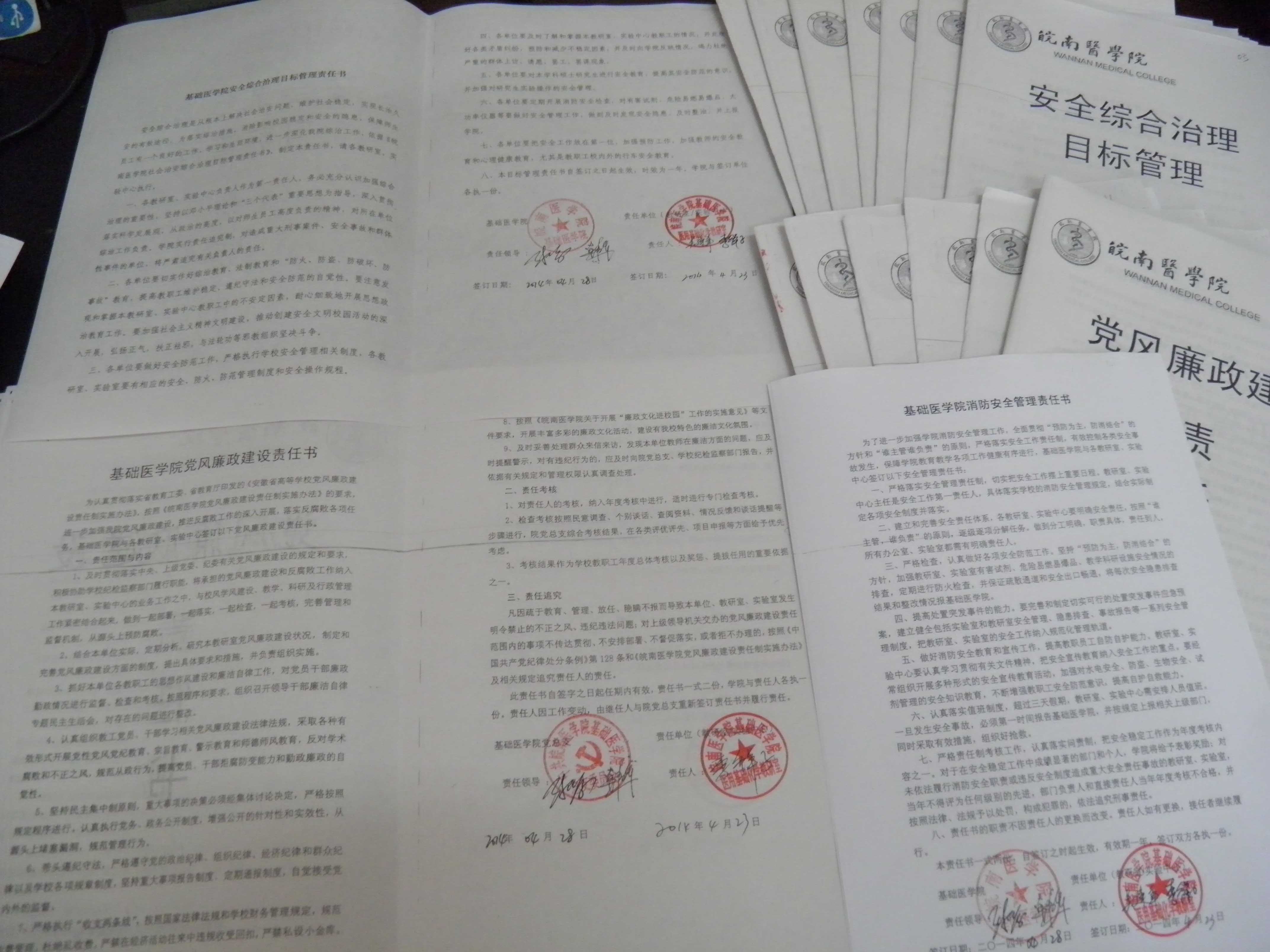 为贯彻落实我校2014年党风廉政建设工作会议和安全工作会议精神, 4月23日上午,基础医学院在院会议室召开期中安全工作会议,签订目标管理责任书。会议由基础医学院学院院长张根葆主持,全体教研室主任、支部书记参加了会议。