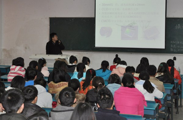 2014年3月8日下午,校报记者团在西教104教室组织开展了新闻摄影讲座,药学院2012级制药工程专业倪琦同学应邀主讲。全体学生记者、各学院负责新闻宣传的学生一百余人聆听了讲座。