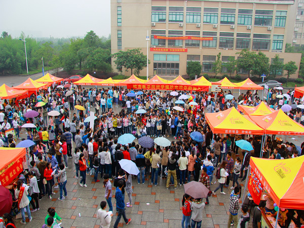 招新现场(二) (一)校团委、学生会积极热情招揽成员 校团委、学生会各部门志愿者积极热情,为前来报名的新同学耐心讲解,向新生介绍各个部门的职能,为新同学答疑解惑,让他们有更多的机会选择适合自己的部门。招新现场人潮涌动,热闹非凡,场面十分火爆,更有校团委、学生会志愿者踩着三轮车,用别具一格的宣传方式吸引新同学。招新当天,虽然细雨绵绵,但招新现场依旧气氛火爆,丝毫没有影响志愿者的服务热情,新同学依然热情参加招新活动,招新时间长达九个小时。 (二)社团精彩节目轮番上演 学生社团联合会为更好地向新同学介绍社团,在招新现场轮番上演一个个精彩的节目。激情四射的舞蹈,深情的乐队演唱,袅袅的笛音,刚劲有力的武术表演,还有造型各异的COSPLAY真人秀,引来了许多同学前来围观,现场掌声、欢呼声不断。整个招新现场气氛活跃,也充分展示了我校丰富的社团文化。 (三)礼仪团身着旗袍展风采 良好的内涵是自信的来源,极佳的体态是自信的表现,阳光的微笑暖入心扉,温柔的话语照亮心情。礼仪小姐身着红色旗袍,面带微笑,优雅的为前来咨询的同学指导讲解,为礼仪团注入一大批新的能量源泉。 (四)大艺团拿手绝活现场演绎 一阵阵悠扬的琴声响荡在招新现场,大学生艺术团现场为新同学带来古筝弹奏,用最广阔的胸怀,最火热的激情招收爱艺术的新一届成员。 (五)国旗队一抹军绿吸引新生 一身军绿,标准的站姿,国旗队英姿飒爽,以一身凛然正气招纳新干事。 (六)广播站激情四射找寻新声音 广播站成员以其洪亮嗓音,黑色“战”服,吸引大批“新声音”汇入。 各团学组织共吸引7656人次报名参加。此次招新工作缜密谋划,周密安排,宣传到位,组织有序;展示了各团学组织的特色与亮点,展现了我校学生乐于奉献、积极向上的精神面貌,为我校团学组织发展储备了新鲜血液,取得了良好的效果。 近期各团学组织还将根据同学们的报名情况进行笔试、面试等工作。 (胡茜茜/文 倪琦/摄 许国飞、张卉/审)