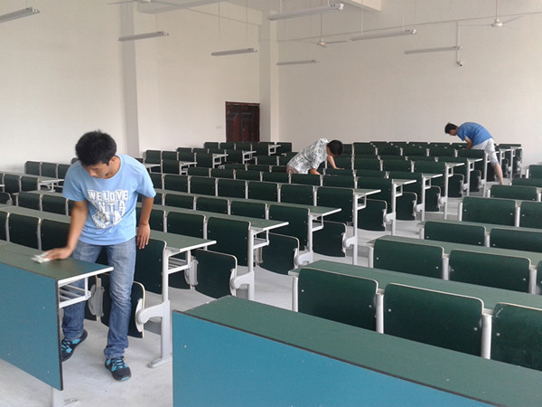 为进一步学习和践行党的群众路线,保证新学期广大师生能在干净整洁的教室上课, 9月1日,药学院同学自发来到逸夫科技楼,在后勤处老师的指导下,对20间教室进行卫生清扫。