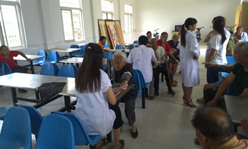 四、家乡探望孤寡老人,提供医学服务 2013年6月30日至7月1日期间,麻醉6班五河实践团队队员在蚌埠市五河县城关镇敬老院探望孤寡老人。队员们为老人们打扫和装饰房间、测量血压、讲解简单的医学知识,并赠送学校的宣传小册。7月2日至7月5日,小队赴安淮乡和申集街两地,向村民们提供医疗志愿服务。头顶炎炎烈日,队员们依然干劲十足,仔细认真的给每位村民测量血压,耐心的回答他们的问题,为他们排忧解难,并村民分发医学知识宣传单,得到了当地村民的一致好评。