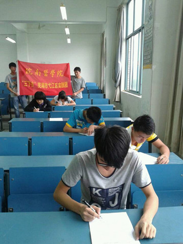 三、校园网络调查 2013年6月29日,皖南医学院麻醉3班梦之队在芜湖市高校园区的各校园和教室进行了关于网络发展及其对青少年影响的调查。在校园随机邀请同学填写关于网络发展及其对青少年影响的调查问卷,同学们积极配合,小队顺利完成了调查工作。调查的结果将做进一步分析研究,最终将形成调研报告的形式展现出来。
