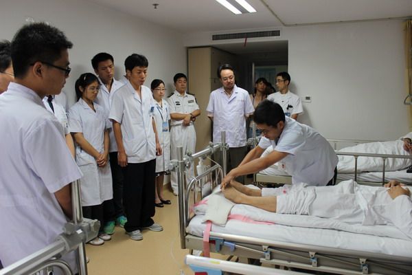 中国人民解放军四一一医院与检查组交流 检查组每到一家医院都受到了医院分管领导和科教部门的热烈欢迎。检查组与各实习医院进行深入交流,介绍了实习中期教学检查的目的、意义及具体内容。在检查过程中,由于带教老师和实习同学的认真准备和积极参与,在各位专家的鼓励和启发下,同学们敢于操作,勇于表现。专家们耐心细致、幽默风趣的点评,让同学们感受到这次检查更像一次集中培训,对大家触动很大。在座谈会上,同学们纷纷表示,一定要严格按照皖南医学院“临床技能操作规程”和诊断学教科书“病历书写规范”的要求,充分利用好后期5个月的实习时间,遵循理论―实践―再理论―再实践的学习方式,勤学苦练临床基本操作技能,争取做一名合格的实习医生。最后,临床医学院副院长蒋韶明在总结时强调,检查不是目的,而是促进教学(实习)医院实习带教意识和水平提升的一种方式和手段,希望同学们在接下来的学习中,集中精力,补缺补差,正确处理好实习与考研的关系,不辜负学校领导的期望。