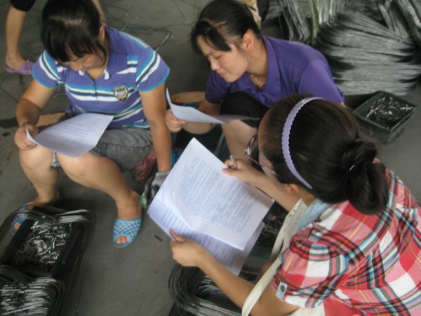 7月22日,口腔医学院2012级暑期社会实践团以郎溪县锦富箱包有限公司的员工为宣传对象,开展了以“普法 维权 关心农民工”为主题的普法宣传活动。同学们详细地询问了员工的工资待遇、作息时间及合同签订等问题,同时为他们详细讲解了劳动法中与民工切身利益相关的法律规定。在宣传活动中,组员向他们普及了法律知识并告诉他们维权的途径,以此来保障自己的合法权益。
