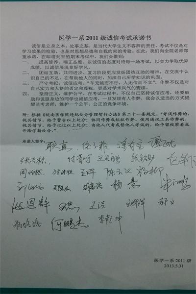 考试月将至,为进一步强化学生安全防范和诚信考试意识,督促学生积极备考,5月31日晚,医学一系2011级在2号教学楼103教室召开了诚信考试教育活动,年级辅导员刘韦、叶长江及全体班干参加了会议。