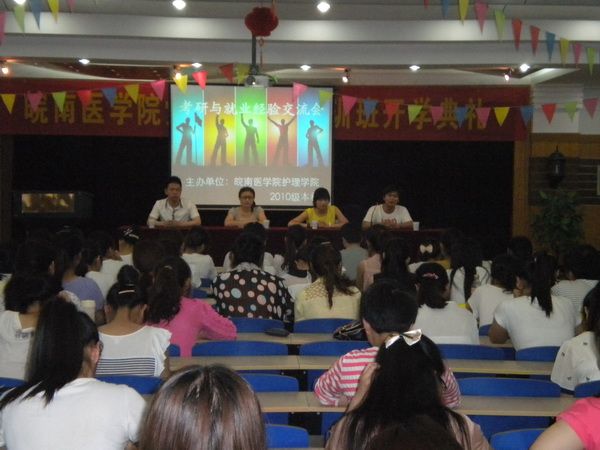 为帮助同学们了解考研与就业方面知识,掌握相关技巧。5月24日晚,护理学系2010级本科在老校区实验楼七楼报告厅举办考研与就业经验交流会。本次交流会邀请了2008级四位同学,他们分别就考研、就业、选调生三个方面为本年级同学传授经验。