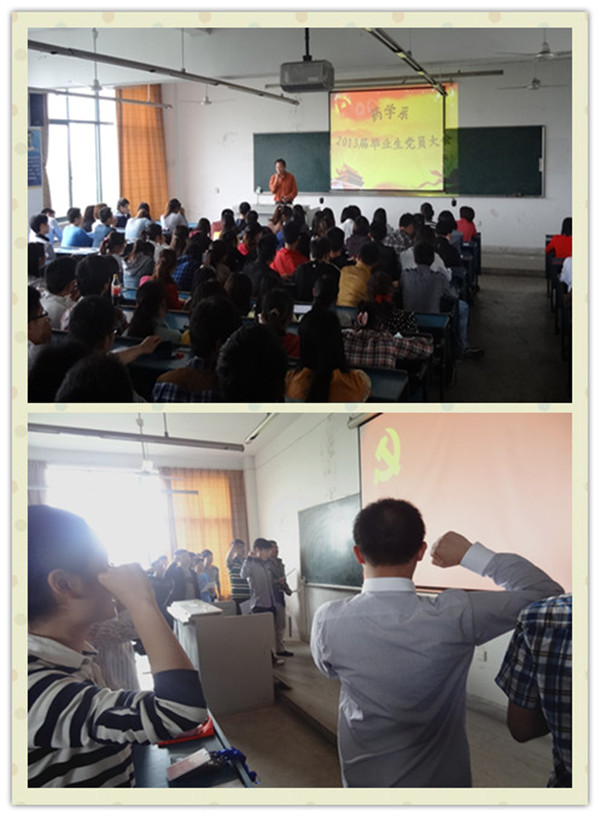 党员大会暨入党宣誓 “一份责任”――药学系学生第四党支部党员在文明离校工作中充分发挥党员的模范带头作用,于毕业班宿舍楼创立了“党员工作站”, 将毕业生党员作为所负责宿舍的直接责任人,完善党员联系宿舍制度,并将具体职责予以公示,以全面促进毕业生党员在服务同学、维护宿舍安全稳定等离校工作中彰显先进作用,取得了显著效果。