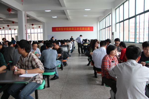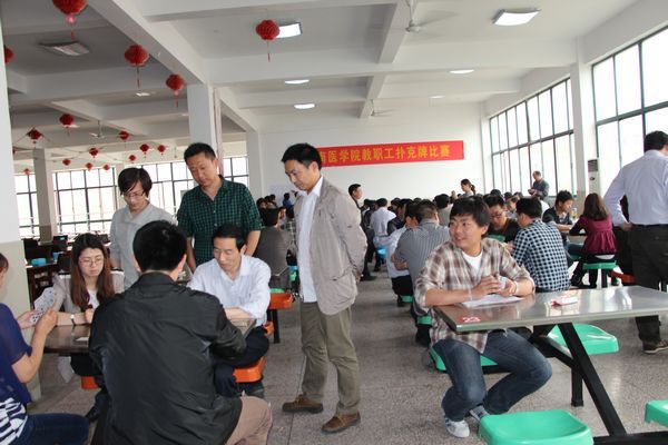 比赛现场(三) 本次活动中,12个分工会94名选手参赛,按抽签方式进行分组。经过5天5轮48场角逐比赛,共有八对选手获奖。获得第一名的两对选手是:机关四分工会储俊杰、吴义苗,医学一系分工会王金权、韩军;获得第二名的两对选手是:机关二分工会杨会杰、赵正飞,基础部分工会葛嘉亮、杨前;获得第三名的四对选手是:基础部分工会康勇、王翠莲,机关四分工会王方根、姚炎煌,预防医学系分工会朱丹、姚应水,药学系分工会张叶明、廖冬冬。