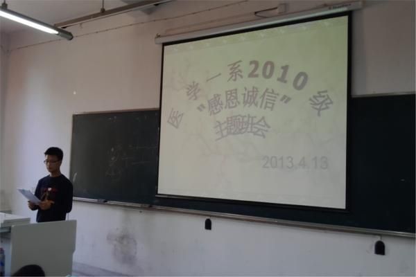 为大力弘扬社会主义核心价值观,培养大学生自强不息、守信做人、心怀感恩、勇担责任的意识,医学一系2010级积极响应学校号召,开展“感恩 诚信”主题系列活动。 一、召开感恩、诚信主题班会 4月13日, 2010级临床医学专业1-5班的同学们在2号教学楼102教室举行感恩、诚信主题班会。班会中同学们首先用身边一个个鲜活事例讲述了社会、父母、老师、同学对自己的关爱,然后分组讨论如何回报这些关爱。经过了一番激烈讨论后,同学们发现很多时候自己已经把周边人的关爱当做理所应该,很少去回报,因此同学们纷纷表示今后要常怀感恩之心,从身边的小事做起,去关爱那些曾经关爱过自己以及那些需要关爱的人们。最后,同学们探讨了诚信话题,“人无信不立”,诚信是做人根本,但是 “考试作弊”、“恶意欠款”的事情在我们身边却时有发生,因此同学们一致表示今后从自身做起:诚信还贷、诚信考试、诚信交友,做一个有诚信的人。
