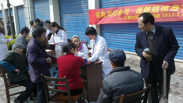 2013年3月24日是第18个“世界防结核病日”,为了积极响应我国“你我共同参与,消除结核危害”的主题,皖南医学院护理学系2011级同学在红星社区工作人员的带领下,进入滨江山庄,为该社区的居民带来了预防结核病的相关知识。