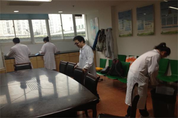 三、清扫灰尘、美化医院 上海市闵行区中心医院实习队从身边小事做起,美化自己的学习生活环境。他们利用周末时间来到内科六病区,开展卫生清扫、告别细菌活动。在两个多小时的辛勤劳动中,队员们擦窗户、抹桌椅、清扫地面、整理报架,场面热闹非凡。此次活动获得了科室教师和病员们的一致好评。