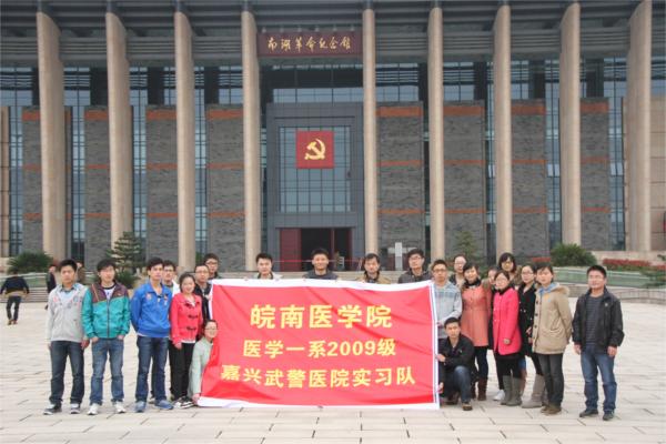 四、体验革命历程、培养奉献精神 浙江省武警总队医院实习队全体队员在医务处刘云海老师的带领下来到南湖革命纪念馆开展“体验革命历程、培养奉献精神”的活动。 看着老一辈共产党员曾经用过的书籍,钢笔以及种种物品,尤其在南湖游船的巨型浮雕前面,同学们深刻感受到了当时中国共产党建立之初的艰难,体会到了没有共产党,就没有新中国,没有中国共产党,就没有如今强大的社会主义祖国这句话的真正内涵。最后实习队全体党员来到党徽面前庄严宣誓,要以身作则、奉献社会,向革命老前辈学习,向雷锋同志学习,永葆共产党员本色。