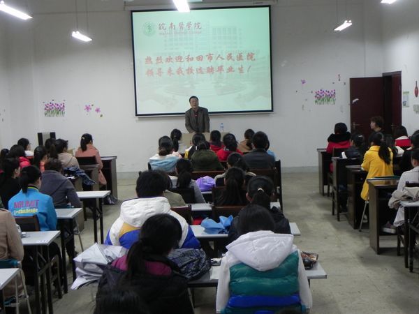 近日,浙江省淳安县中医院、黄山二炮部队医院、江苏省镇江市丹徒区人民医院、新疆维吾尔自治区和田市人民医院分别来我校举办专场招聘会,提供就业岗位400多个,涉及临床、麻醉、影像、药学、护理、信管等多个专业。