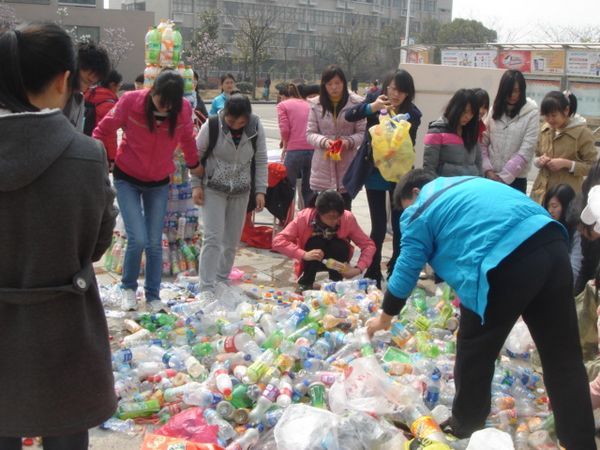 为提高同学们的环保意识,3月12日,药学系2011级团总支在新食堂广场举行“心中种下一棵树”志愿者活动,倡导大家用废弃塑料瓶换取花种。
