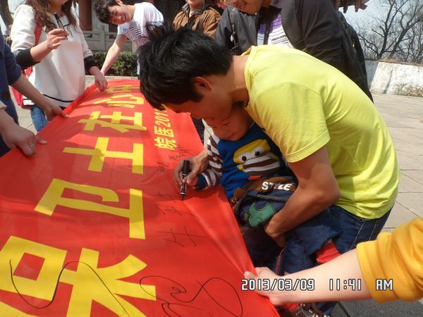 为响应校团委的号召,激励学生弘扬雷锋精神,阳春三月,预防医学系2011级青年志愿者奔赴马鞍山采石矶开展以“雷锋精神驻我心”为主题的志愿服务活动。 热爱祖国,做新时代活雷锋。同学们拉起横幅进行“学雷锋,树新风,环保卫士在心中”百人签名活动,并清扫了唐朝诗人李白的衣冠冢,拾捡垃圾,争做环保卫士,以实际行动宣扬雷锋精神,活动受到市民们热情参与。 此次活动同学们传递着绿色环保意识,不仅更直接的体会理解了雷锋精神及环保的重要性,还增强了自身的实践能力,彰显了新一代大学生良好的精神面貌。同学们纷纷表示要在以后的人生道路中,继续弘扬雷锋精神。