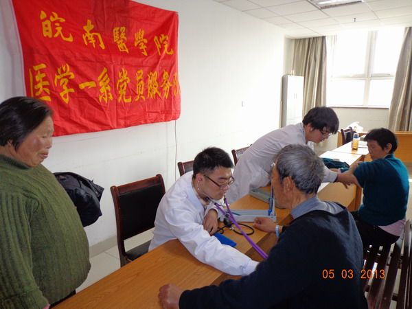 为大力弘扬“奉献、友爱、互助、进步”的志愿者精神,深化青年志愿者行动,倡导文明进步的社会风尚,医学一系2009级弋矶山第二实习队积极有序地开展了以“医疗科普宣传,义务医疗服务”为主题的学雷锋志愿服务活动。 3月5日下午15:30,14名队员在完成各自科室工作后,前往弋矶山医院神经内科开展志愿服务活动。队员们热情洋溢,分工明确,认真为每一位前来咨询的群众提供服务,普及医疗卫生常识;为老人测量血压,宣传心血管疾病知识;测量随机血糖,了解血糖状况。一位老奶奶欣慰地说:“像我们一把年纪的自己也不能够自己测量血压,你们这些小青年搞得这个活动啊,是给我们提供了方便,要是经常有这样的机会就好了。”群众的褒扬不仅是对同学们学雷锋活动的肯定,同时也是同学们学习医学知识服务社会的动力。这次活动不仅服务了群众,提升了自我,同时点燃了我们对医学事业的热爱和激情。