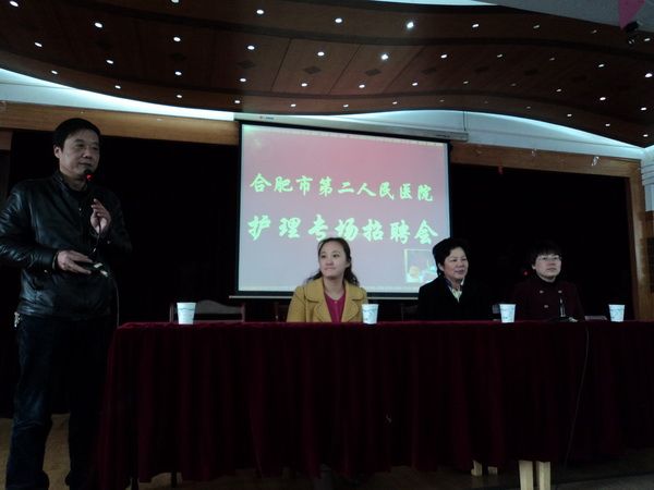 2013年3月5日,合肥市第二人民医院护理部任主任、人事处吴处长一行来我校招聘2013届护理本科毕业生。招聘会在我校北校区四号楼7楼报告厅举行。2008级护理本科100多名学生参加了招聘会。系党总支书记刘群、副主任李远珍以及2008级护理本科辅导员热情接待了任主任一行。