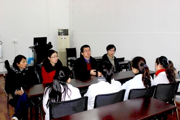 四、密切联系,走访实习医院看望学生 寒假期间,医学一系多次与分布在全国各地的42家实习医院联系,了解学生在医院的实习情况。开学前,系部组织教师和2009级辅导员先后奔赴马鞍山、黄山、合肥等实习医院,进行走访,了解学生实习状况,配合实习医院做好学生的思想政治教育工作。42所实习医院的实习生在医院表现良好,许多学生得到了医院领导和带教老师的表扬和充分肯定,实习教学秩序井然。
