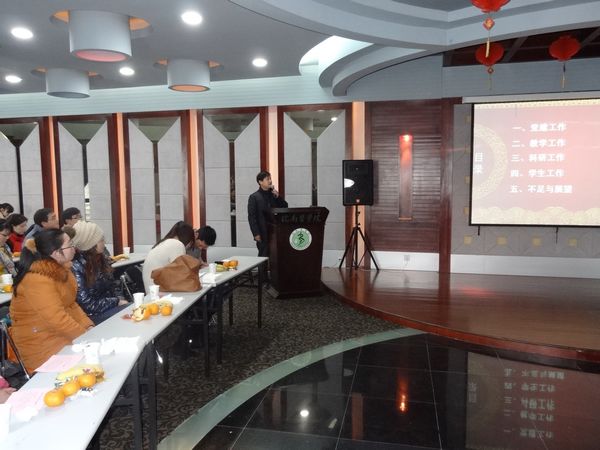 2013年1月17日下午,药学系在大学生活动中心多功能厅举办2012年度总结表彰联欢会,认真做好年度总结表彰、氛围营造、典型宣传、学习先进、谋划未来等工作。校纪委副书记、监察处处长、纪委办公室主任吴少云,国有资产管理处处长钱门祥,附院临床药学教研室主任谢海棠、副主任徐文科和全系教师参加了会议。系党总支副书记赵梅主持会议。