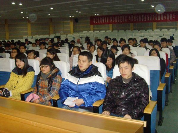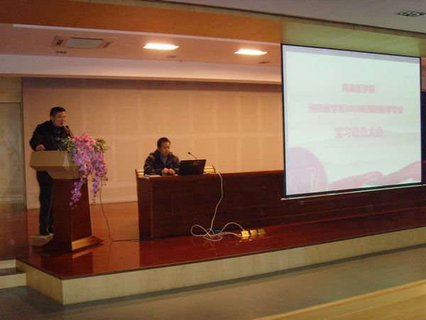 2012年12月17日,预防医学系在图书馆三楼学术报告厅召开了2009级实习动员大会。预防医学系党总支书记朱丹、主任姚应水、副主任文育锋、辅导员陈雪娟及2009级全体同学参加了大会。