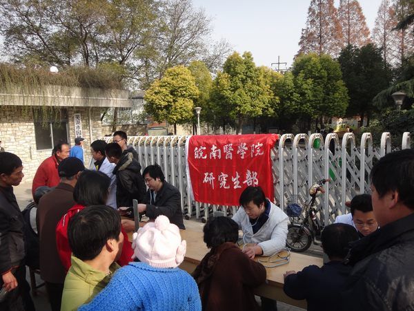 12月8日,研究生党员在赭山公园门口区开展社区义诊活动。同学们利用自己的专业知识,为老人们量血压,听心音,提醒老人们高血压合理用药和冬季预防保健的常识。本次活动精心挑选了有多年临床经验的研究生党员,他们扎实的专业知识,耐心的服务态度,赢得了大家的称赞。
