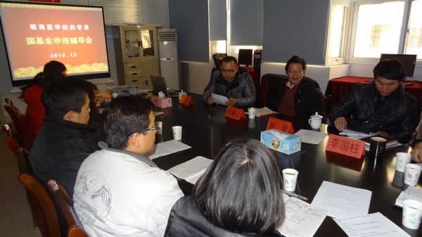 12月18日下午,药学系在会议室召开了国家自然科学基金(青年基金)申报辅导交流会,我校国基金获得者姜玉新博士和徐蕾副教授应邀作经验交流。药学系党总支书记、副主任李国柱和全体教师参加会议。系副主任陈靠山主持会议。