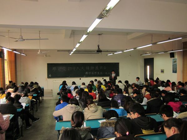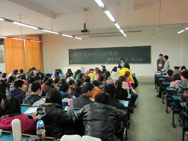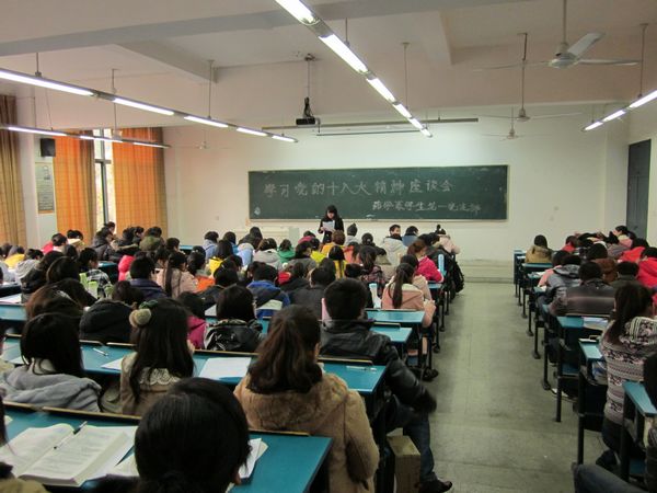 三、学习十八精神 争做时代先锋 为了深入理解、体会和贯彻十八大会议精神,把思想、认识和行动统一到党的“十八大”精神上来。11月30日,药学系学生第一党支部组织开展了以“学习十八精神,争做时代先锋”为主题的座谈会,畅谈学习体会和感想。 会上,同学们踊跃发言,他们联系自身经历谈了对社会公平和共同富裕等问题的看法。部分来自农村的同学表示农村经济的飞速发展改变了无数人的命运,也给了农村学生更多的发展空间和发展机会。除此以外,同学们还表示要从十八大精神中学会感恩,是国家和学校培养了他们,要懂得去回报学校和社会,为学校和社会的发展贡献自己的力量。
